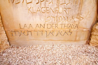 In the following I want to give you a first glimpse at the ceremony at Yad Vashem (Jerusalem) on August 19th 2010, which commemorated the vanished Jewish community of Laa an der Thaya. The labyrinth-like „Valley of Communities“ is made of light-yellow Jerusalem-stone and commemorates the extinguished Jewish communities all over Europe. Guests from the USA, Austria, Germany and Israel came to attend the day, which started at 9 AM at the Valley of communities and ended at 4: 30 PM in Ramat Rachel, near Jerusalem.